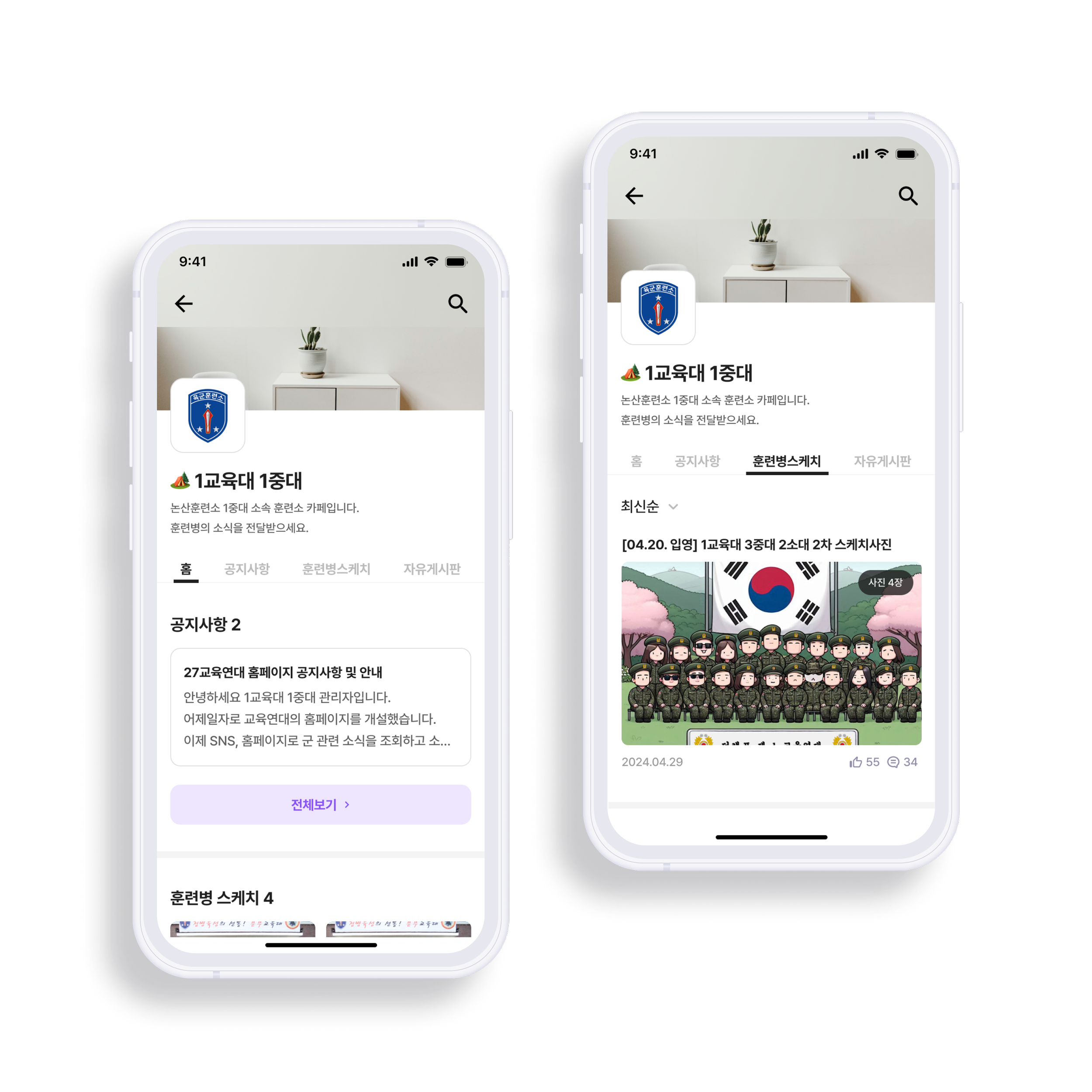 군대에서 직접 관리하는 훈련소 카페를 통해 훈련병의 사진과 훈련소 공지사항을 전달해드려요.